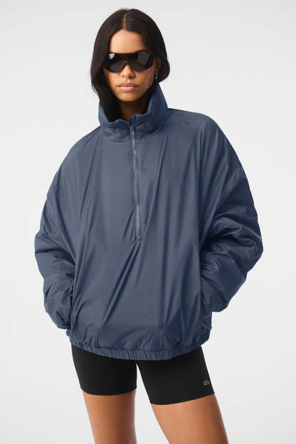 Running to your workout in the rain? Reach for the Latitude Pullover. It’s lightly filled (for a touch of warmth) with functional details like a half-zip collar, zippered side pockets, banded cuffs and a banded hem. Fitwise, it’s generous and oversized. And it’s made from 100 percent nylon—the kind that’s durable, swishy and ready to face the elements.
