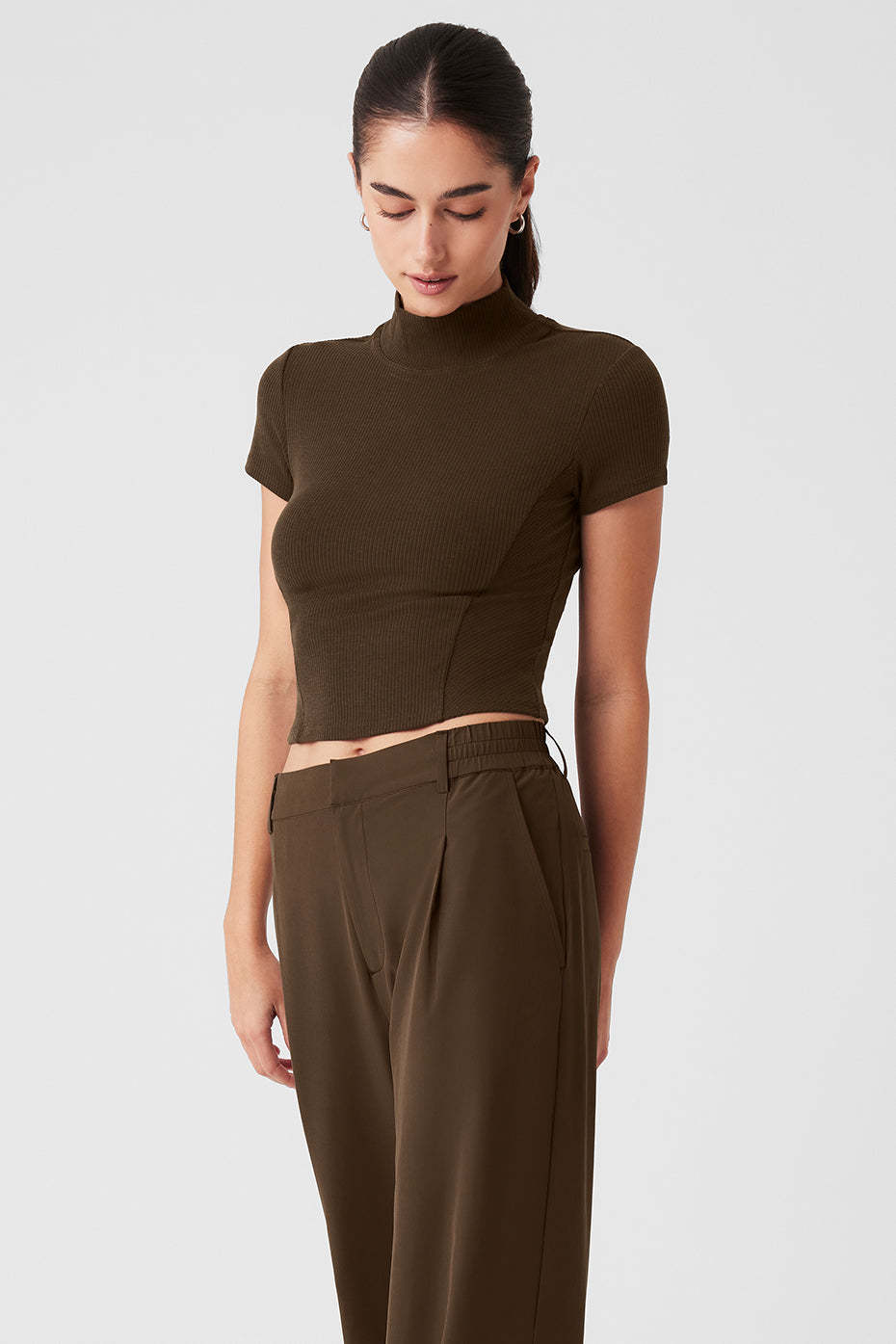 With its mock neck, short sleeves and cute contour seaming, this tee is the very definition of an elevated basic. And wait till you feel the Wellness Rib fabric—it’s soft yet substantial, stretchy and incredibly flattering. Style it with sweats for morning coffee, and trousers for dinner with the girls.