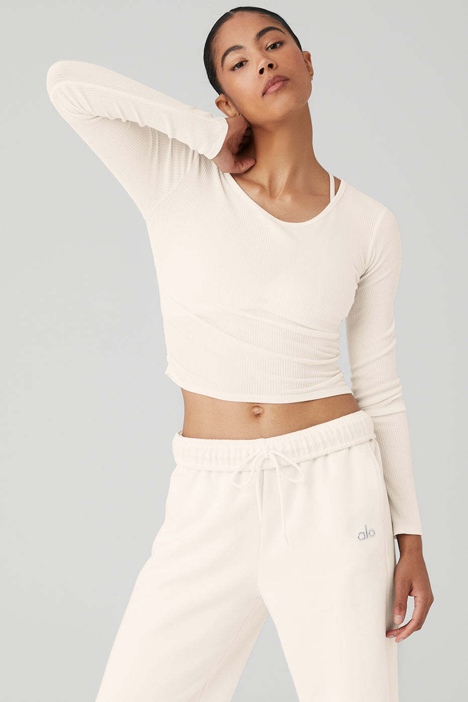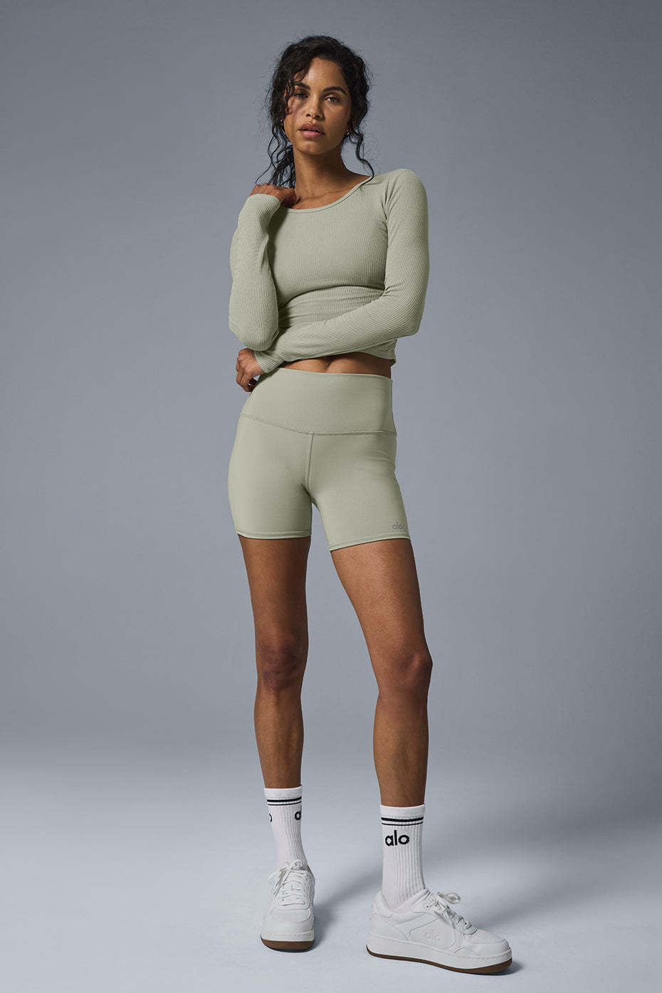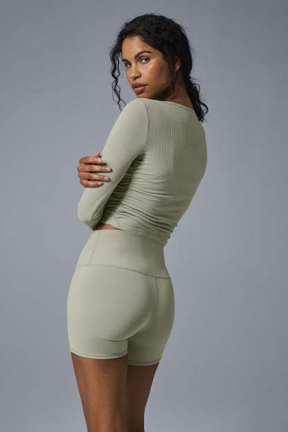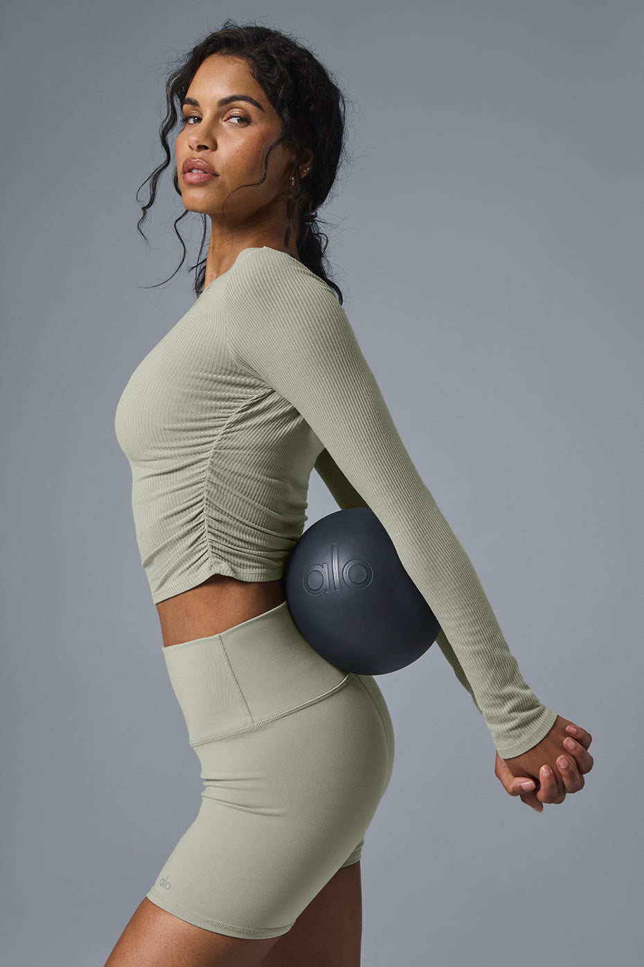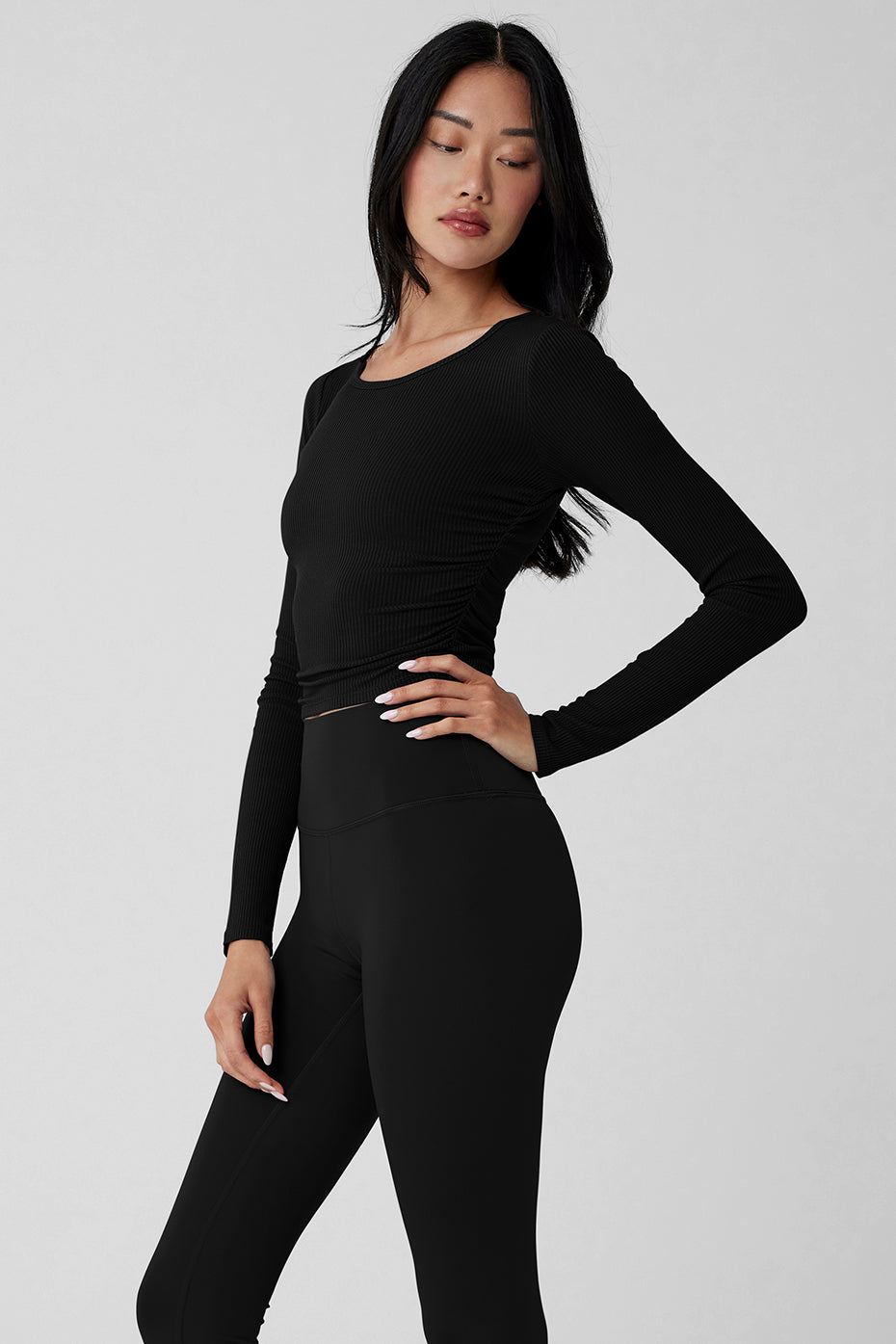 You’ll reach for this top for everything from casual outings to gentle cat-cows. It’s so soft it’s almost silky, slightly sheer and subtly ribbed for extra style points. Fitwise, it hugs the body with a flattering crewneck, a cropped hem and cute, ruched sides. Pick a hue and pair it with leggings and lounge pants galore.