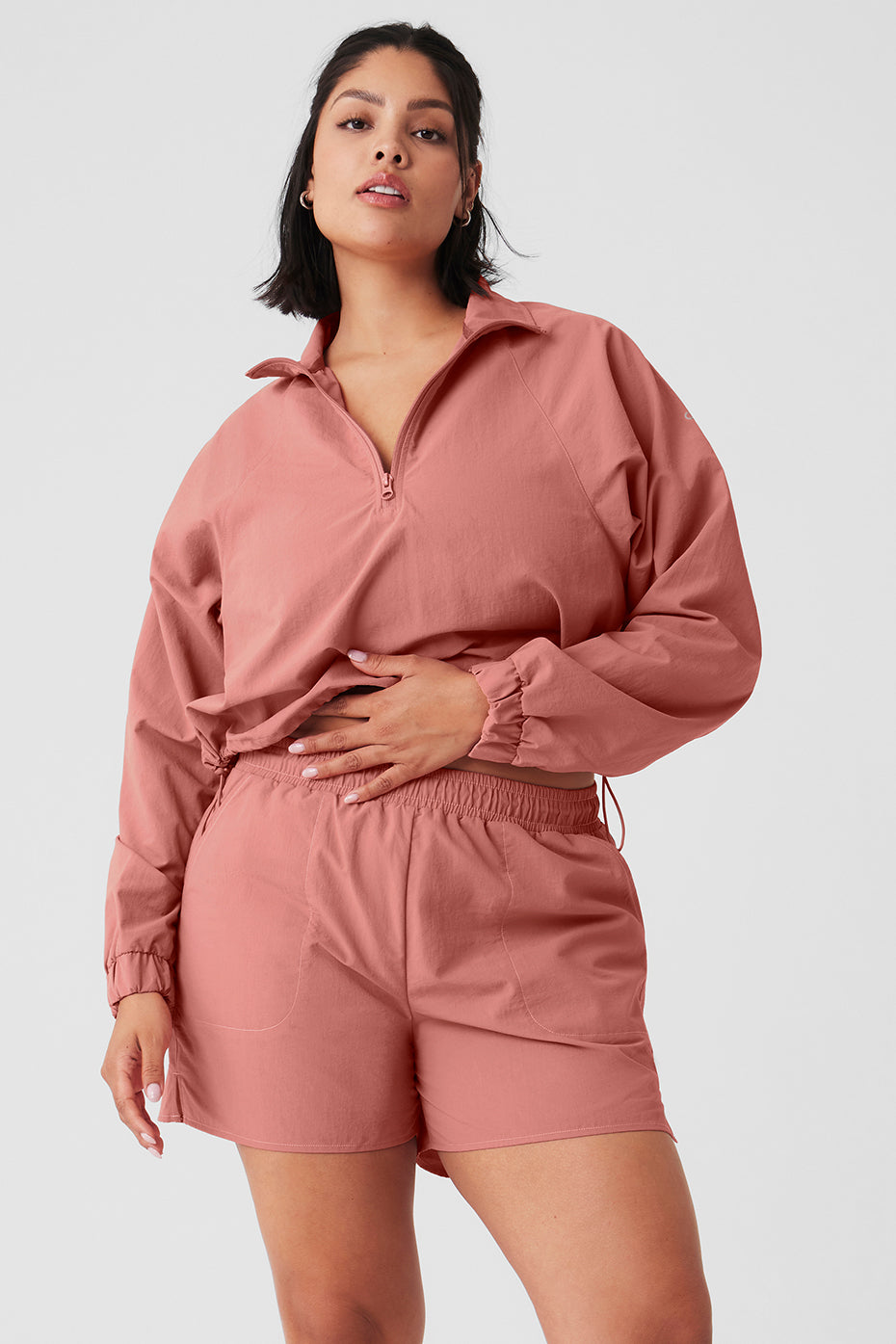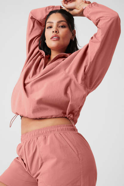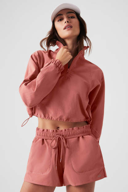 Upgrade your coverup collection with the Cropped ¼ Zip Alumni Pullover, cut from cool crinkle woven fabric that’s perfect for to-and-from yet easy enough to lounge in. Make it pop with leggings, biker shorts or a cute tennis skirt.