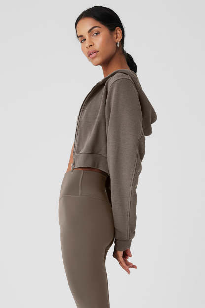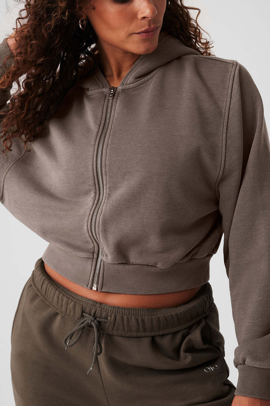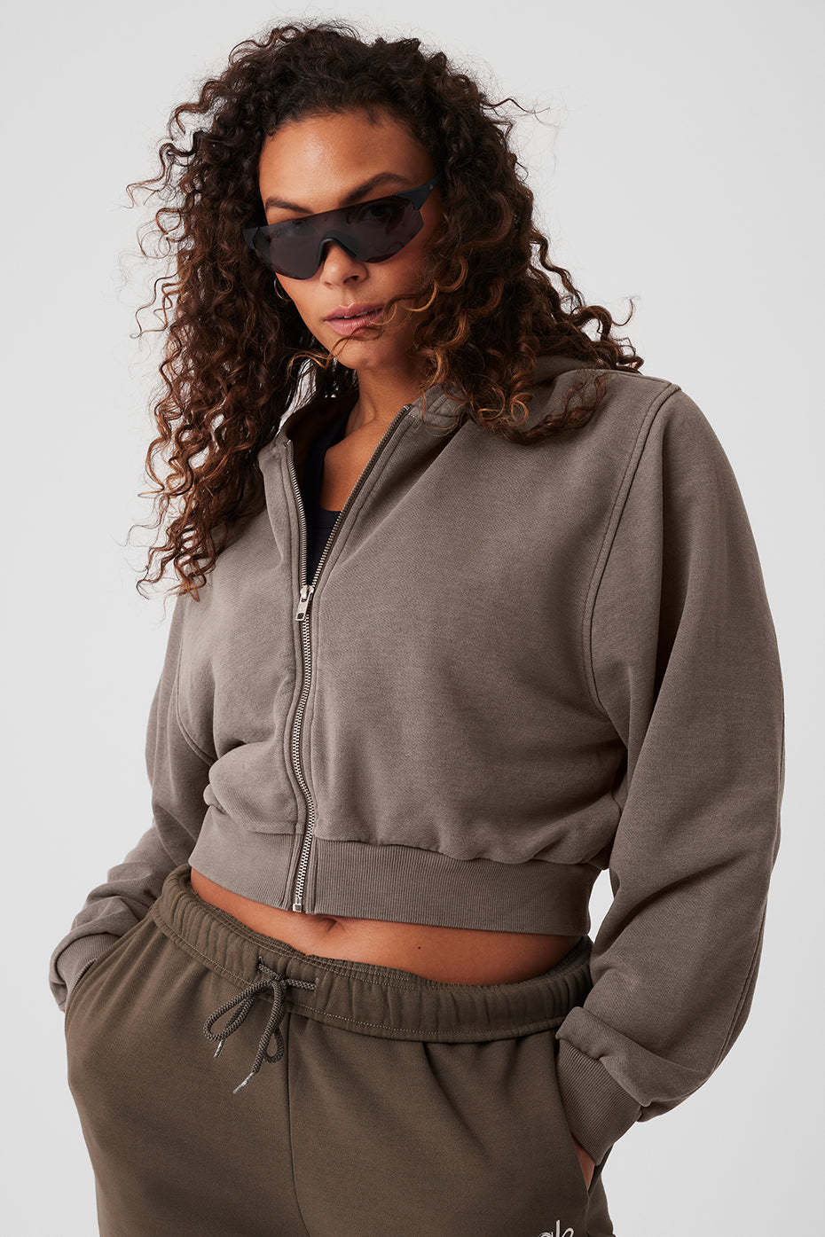 A cozy classic with a shrunken silhouette, the Washed Sweet Escape has a hood, a front zipper, ribbing at the cuffs and a waist-grazing hem. The pocketless design creates a streamlined fit, and the seamed details along the back and arms elevate the look for outside-the-house adventures. Plus, it’s all made from our soft, smooth, incredibly comfy Accolade fabric.