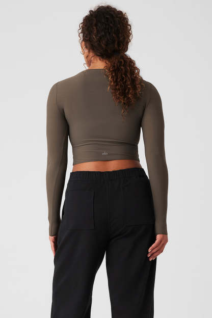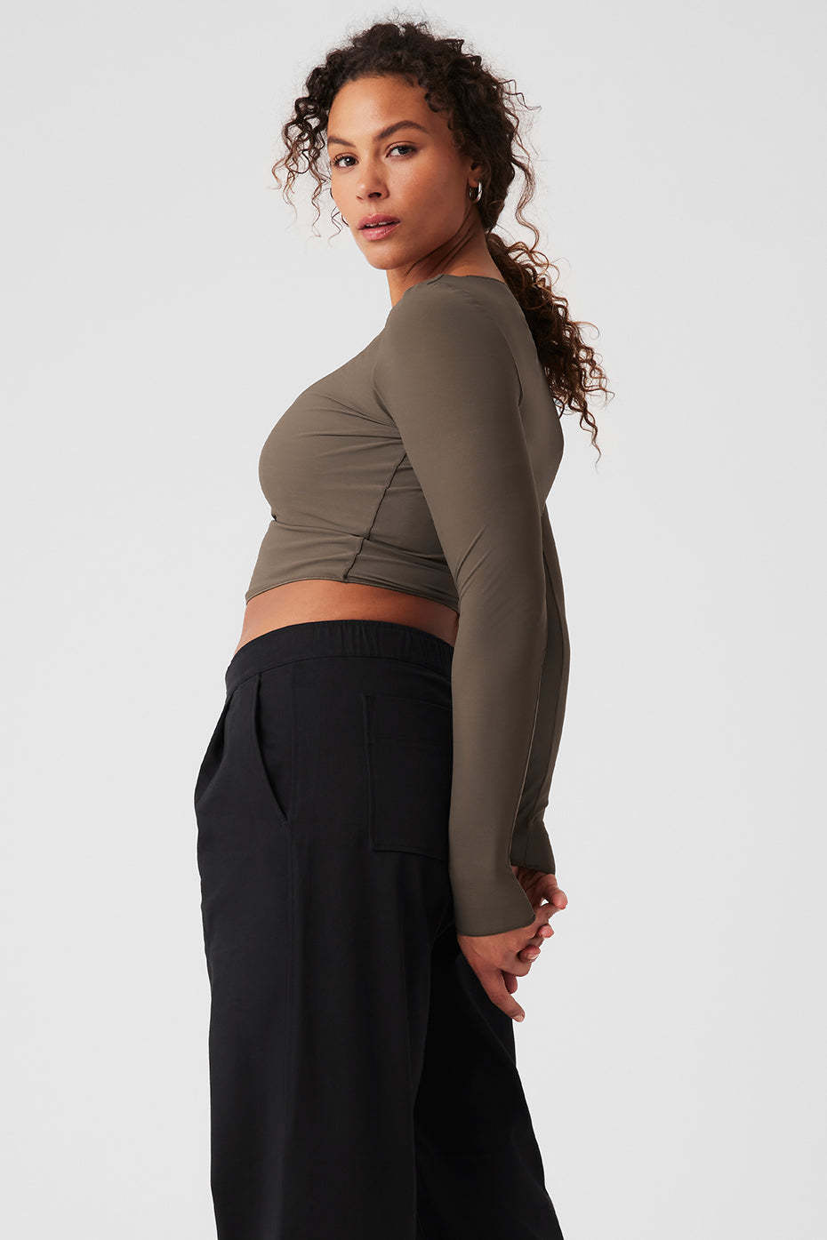 Add this top to your wishlist ASAP. It’s made from super stretchy, semi-sheer mesh with a cute wide neckline, long sleeves and a tight-but-not-too-tight fit. And as for the waist-grazing crop, it matches up with skirts, jeans and cargos—or the Mesh High-Waist Flicker Pants, when you want to show a little skin.