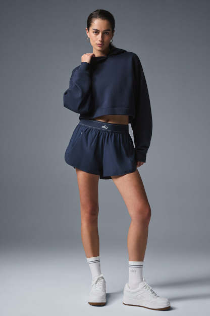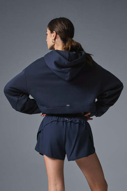 A cute and comfy counterpart to your high-waisted favorites, the Bae Hoodie has a relaxed fit, long scrunchable sleeves, ribbed cuffs and a slightly cropped ribbed hem that highlights the natural waist. The pocketless design is streamlined and bulk-free, and the French terry is an absolute pleasure to pull on: smooth on outside and fleecy on the inside.