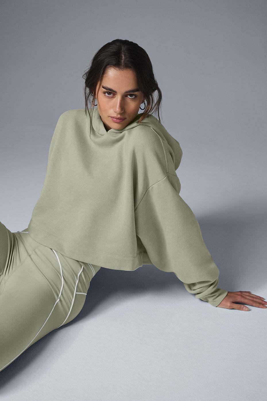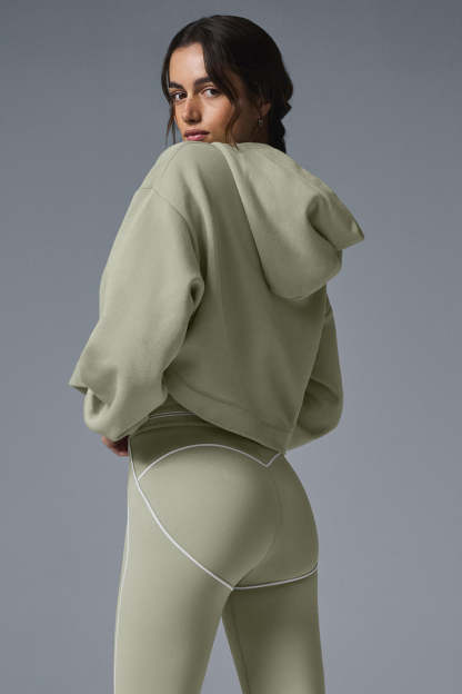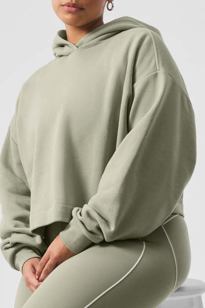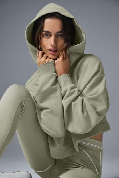 A cute and comfy counterpart to your high-waisted favorites, the Bae Hoodie has a relaxed fit, long scrunchable sleeves, ribbed cuffs and a slightly cropped ribbed hem that highlights the natural waist. The pocketless design is streamlined and bulk-free, and the French terry is an absolute pleasure to pull on: smooth on outside and fleecy on the inside.
