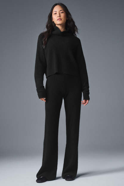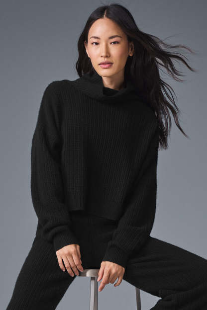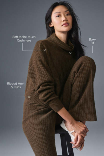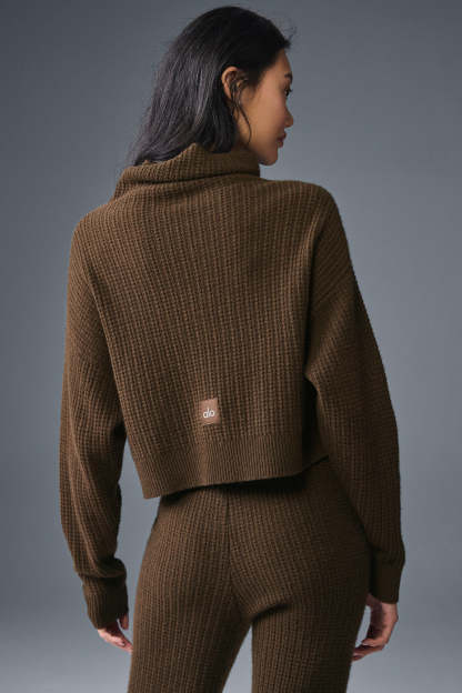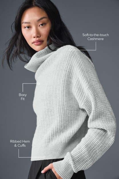 Cashmere Plush Waffle Turtleneck Pullover