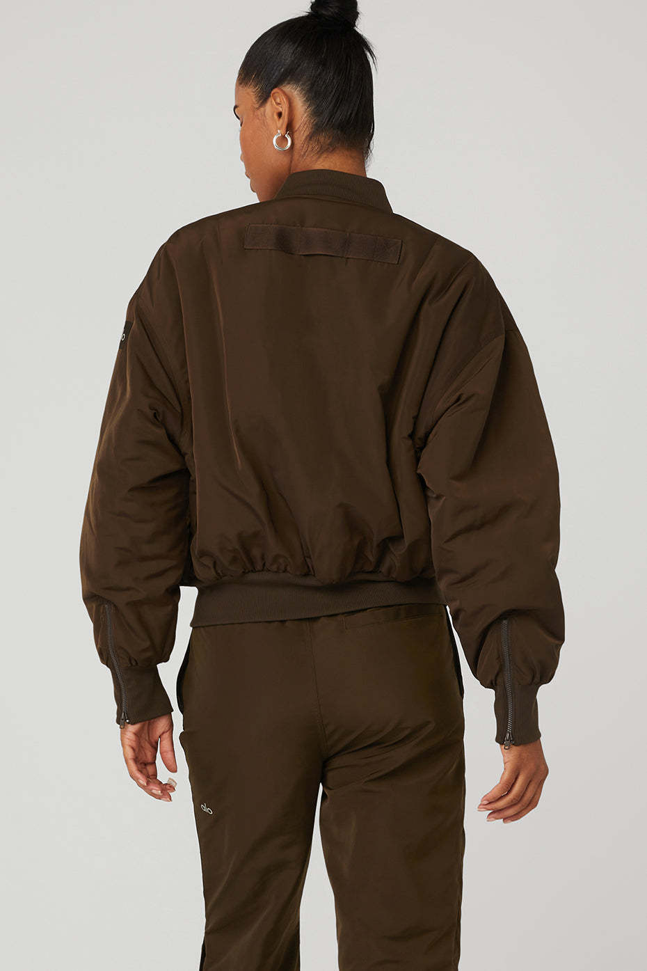 Regular length bomber jacket hits at the hip2-in-1 sleeve pocket\r