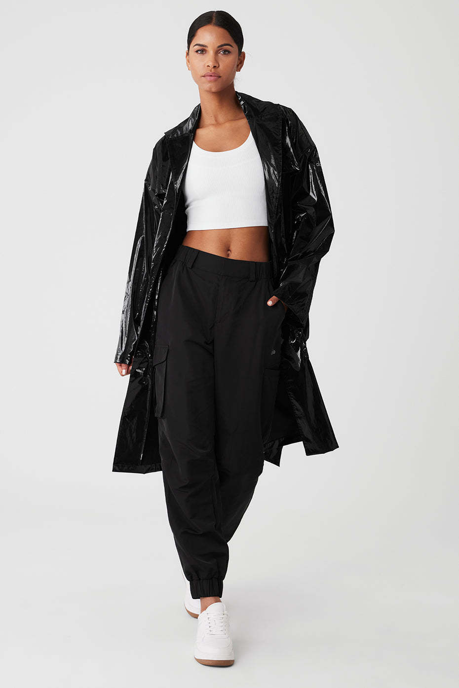 Designed for a long, oversized fit—size down if you prefer a closer fitFull length \u0026 hits below the kneeWater-resistant crinkle-woven nylon with metallic finish