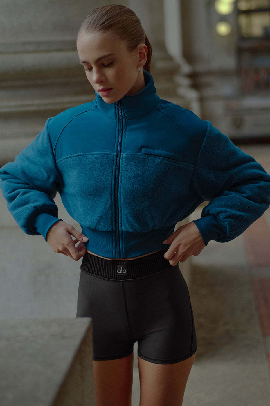 True to size—designed for a slightly puffy silhouette with light fill and a cropped hemUltra-soft, fleecy fabric with smooth, contrasting panels