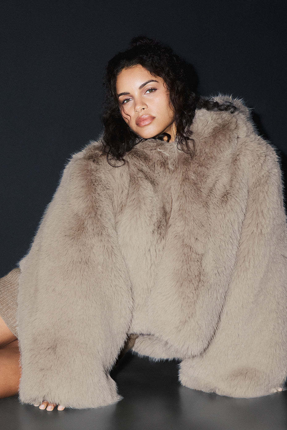 Designed for an oversized fit with a dramatic, fluffy silhouetteSoft, ultra-fluffy, faux fur100% Polyester