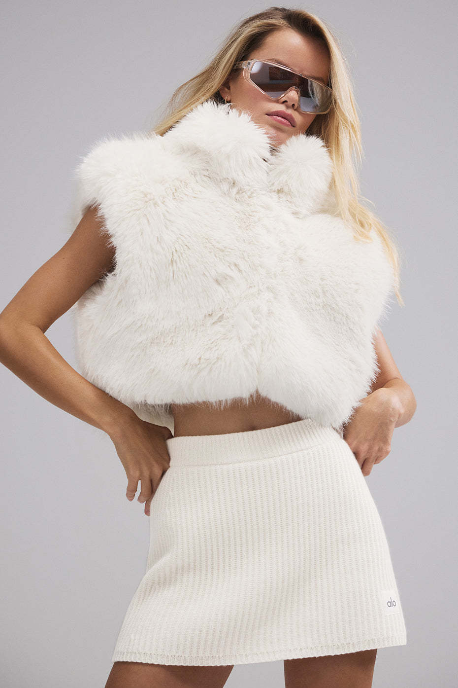 True to size—designed for a boxy, cropped fit with a dramatic, fluffy silhouetteSoft, ultra-fluffy faux fur