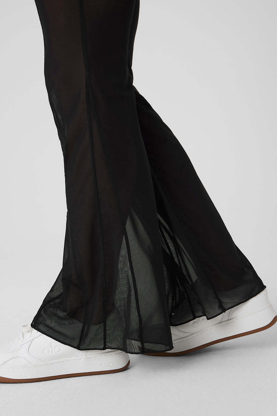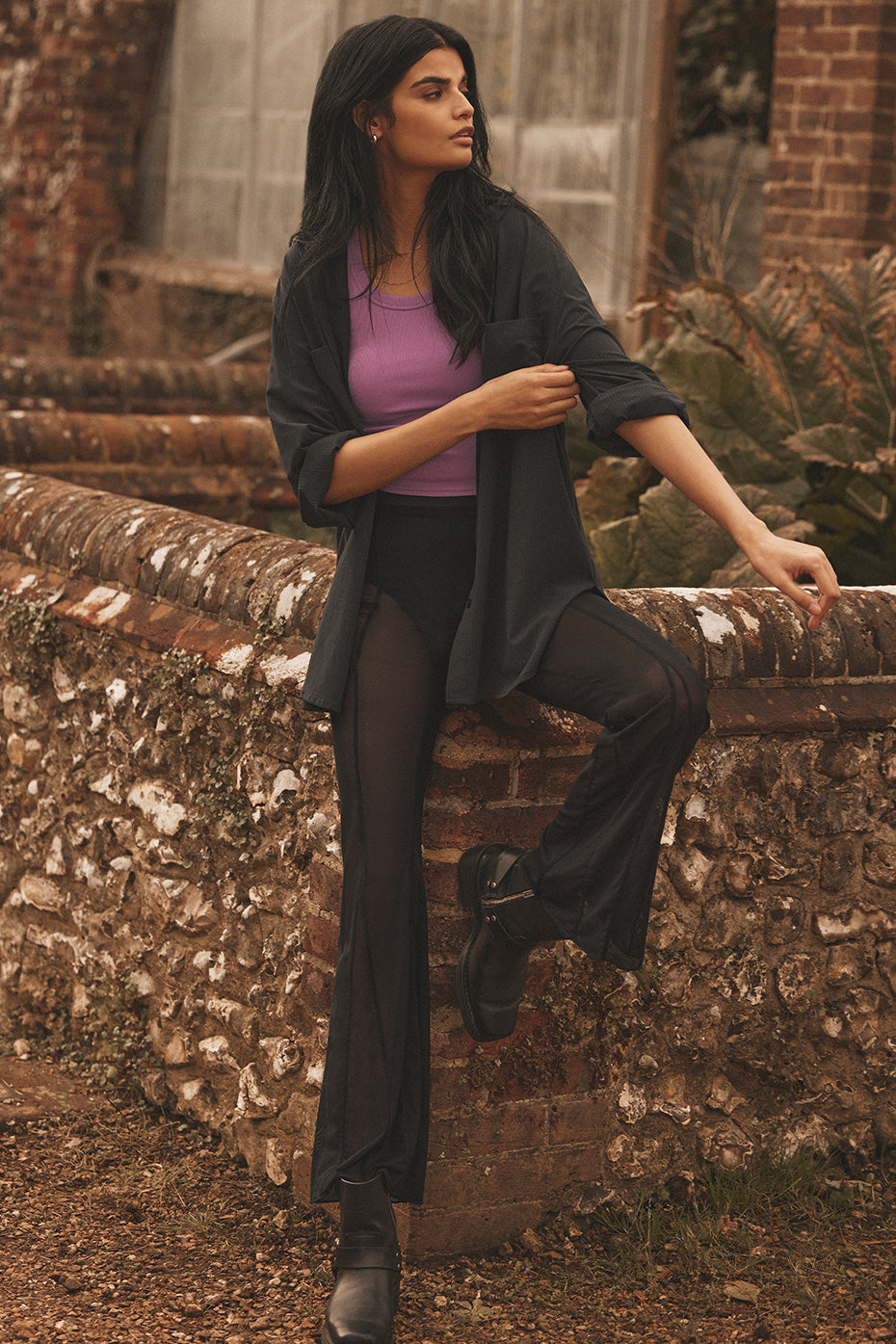 Layered with boyshorts or a barely-there thong, the Flicker Pants are the perfect statement piece for a festival or night out. They're lightweight, semi-sheer and stretch-infused for a close fit through the hips and thighs that flares below the knee for a wide, drapey finish. And the extra-high-rise waistband? It’s ultra-flattering and pairs perfectly with the Mesh Sheer Illusion Cropped Long Sleeve top.