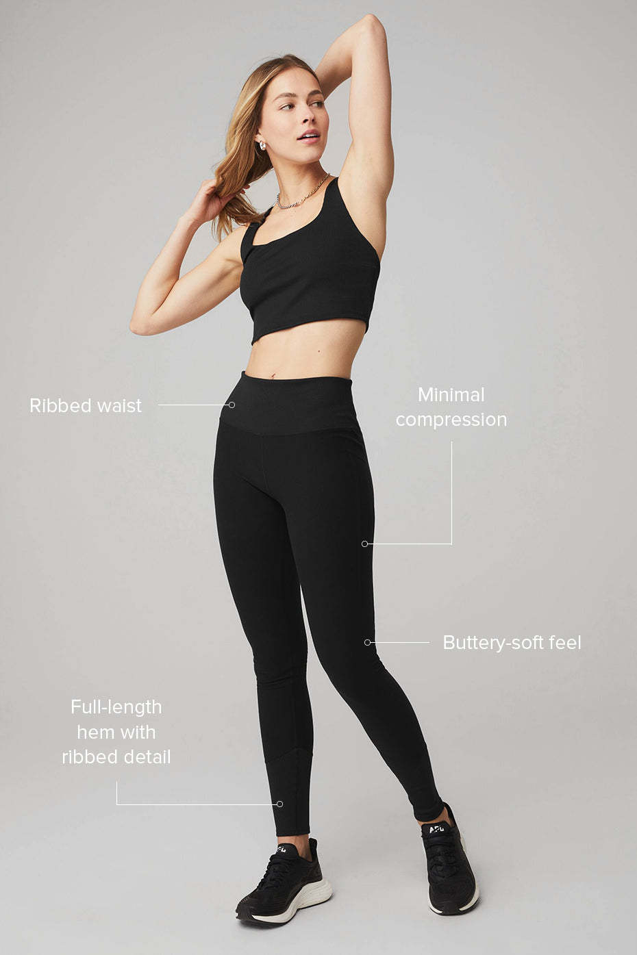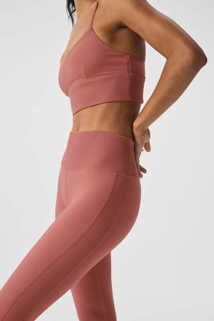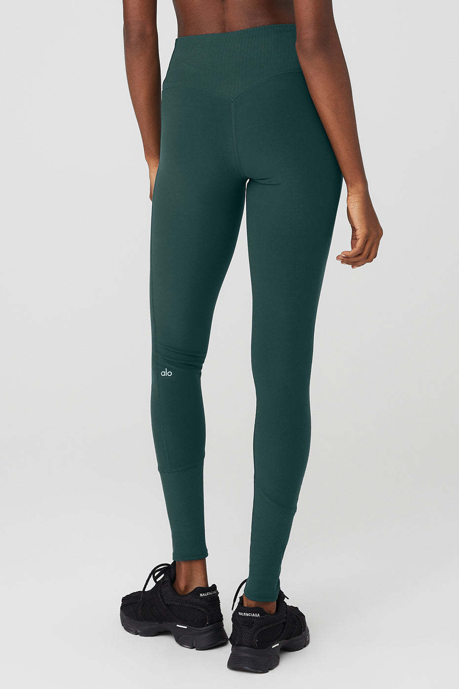 For figures 5’5” and under, we recommend the Alosoft High-Waist 7/ 8 Highlight Legging