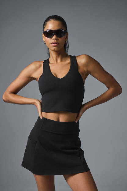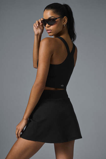 Our first-ever Airbrush skirt, the Good Form is smoothing and gently compressive through the hips, with a subtly flared mini-skirt hem. It has cute seams, front slits, convenient built-in shorts and side pockets for stashing a tennis ball or two. You'll look cute on the court and chic wherever you end up after—especially when you pair it with an Airbrush bra.