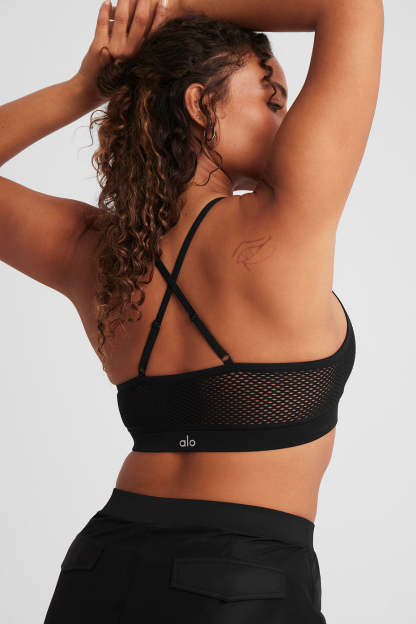 Give your look a breath of fresh air in this bra, made from a stretchy fishnet fabric with a front lining for coverage. It has a supportive underbust band, a subtle V-neck and adjustable straps that crisscross in back. Take it for a spin under a blazer or with the Sheer Effusion Skirt for the ultimate eyes-on-you moment.