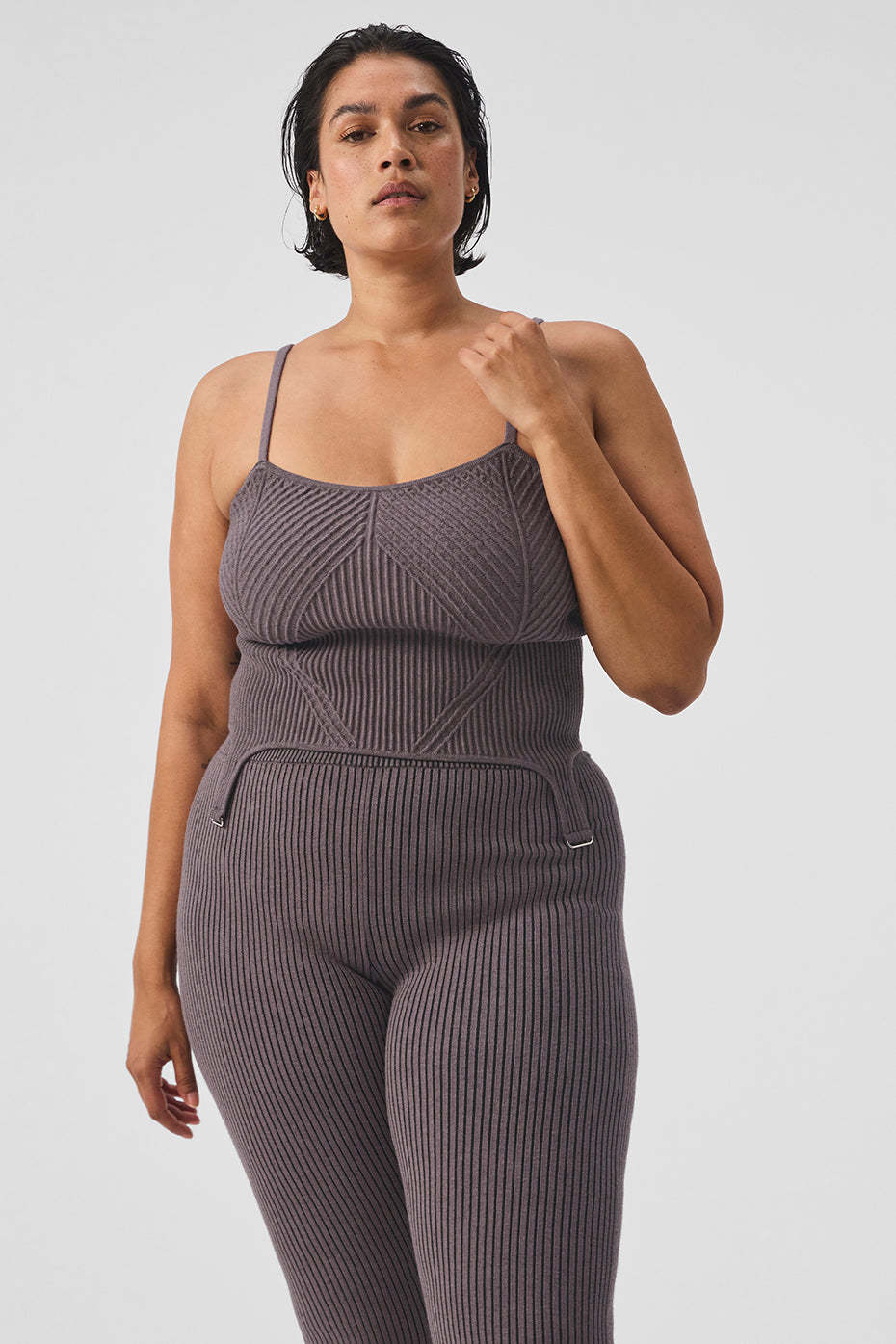 Crafted from soft, structured, ribbed-knit fabric inspired by the nuanced texture of denim, this tank features a cropped fit, dainty adjustable shoulder straps, and a garter strap detail for a touch of allure. Trust us, you’re going to want one in every shade.